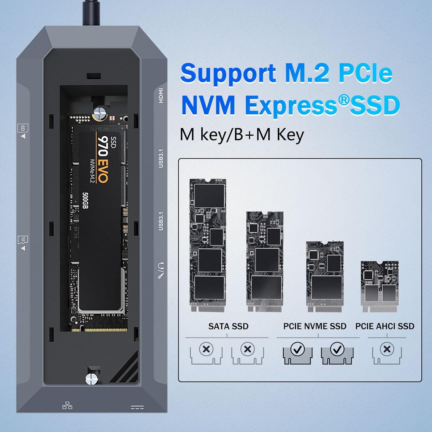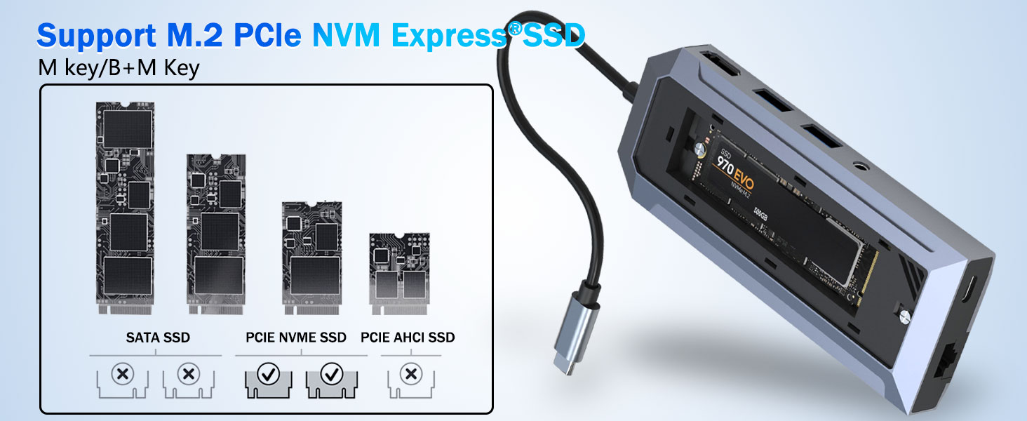 An'anaviy USB hublardan farqli o'laroq, bu qurilma M.2 NVMe qattiq holatda disklarini qo'llab-quvvatlaydigan maxsus SSD korpusini o'z ichiga oladi. Bu xususiyat foydalanuvchilarga alohida tashqi diskni talab qilmasdan to'g'ridan-to'g'ri ish joylariga yuqori tezlikdagi xotira qo'shish imkonini beradi.