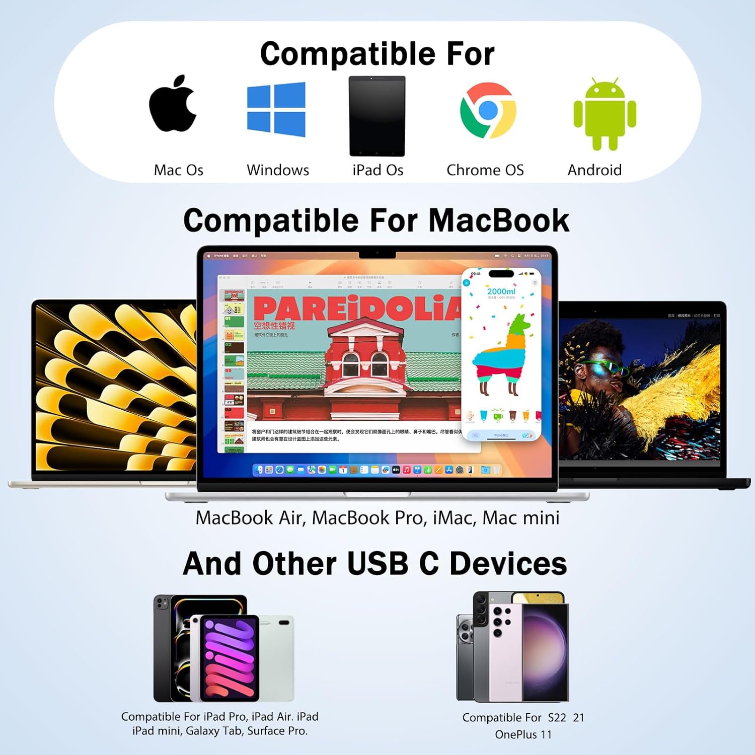 Bu xususiyat bir nechta quvvat adapterlariga bo'lgan ehtiyojni yo'q qiladi va uzoq ish seanslari davomida qurilmalarning to'liq batareya quvvatini saqlab turishini ta'minlaydi.