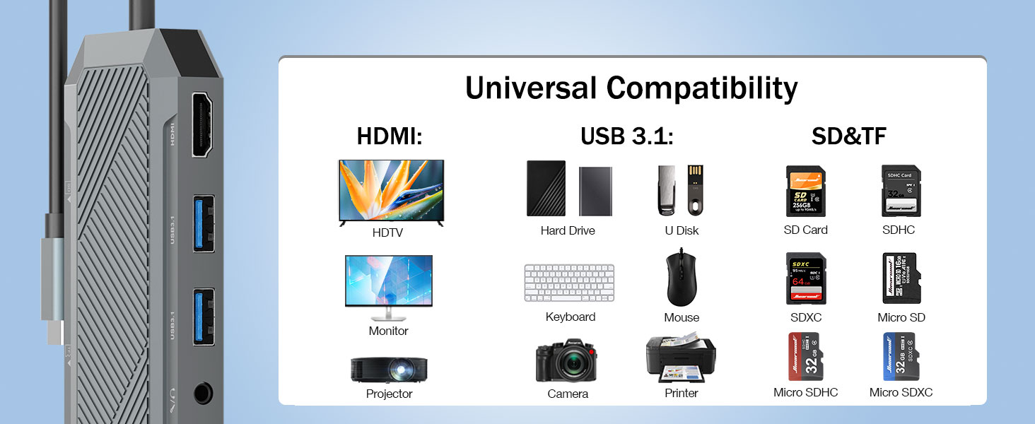 Zamonaviy noutbuklar va planshetlar tobora kuchli va portativ bo'lib bormoqda, ammo ko'plab qurilmalar nozik dizaynlar foydasiga muhim portlarni qurbon qiladi. Natijada, mutaxassislar, ijodkorlar va kundalik foydalanuvchilar ko'pincha ishlashni pasaytirmasdan qurilma imkoniyatlarini kengaytiradigan ko'p qirrali ulanish echimini talab qiladi. M.2 NVMe 4K 60Hz HDMI Splitter uchun SSD korpusli 9-in-1 USB-C uyasi yuqori tezlikdagi maʼlumotlarni uzatish, oʻta tiniq displey chiqishi va oʻrnatilgan SSD xotira funksiyalarini birlashtirgan yaxlit yechimni taqdim etadi.