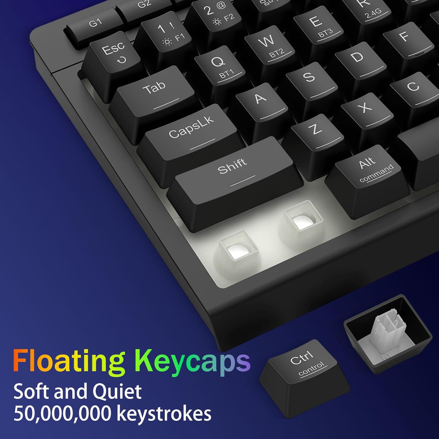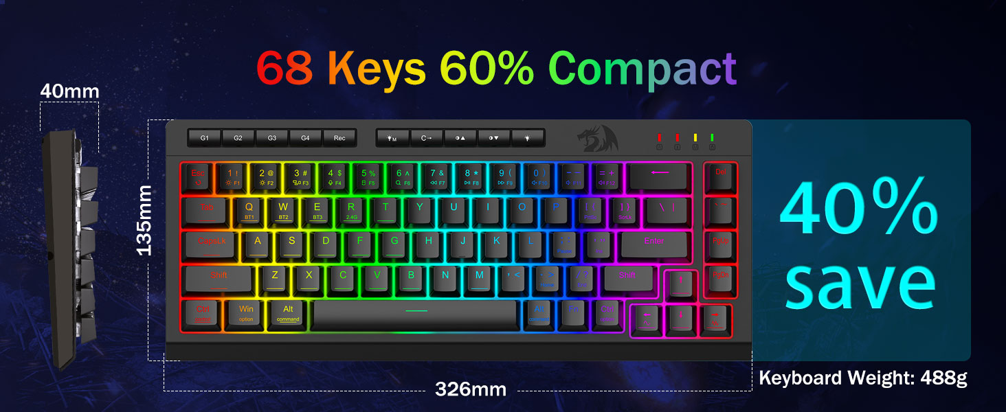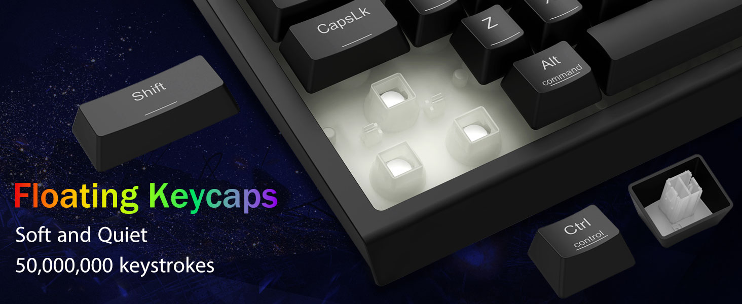 Tri-Mode-Mode va ko'p qurilmaning malakagi -Bluetooth 5.0, 2.4Gh-C simli rejimlari o'rtasida bir vaqtning o'zida 5 tagacha qurilma (kompyuter, Mac, planshetlar, telefonlar, planshetlar, planshetlar, telefonlar, planshetlar, telefonlar, planshetlar, telefonlar ulangan. Imtiyozlar bilan yorliqli tugmachalar yoki Yon tugmachasini gibrid ish / o'yin sozlamalari uchun mukammal tugmachalar orqali almashtiring. 4000ma qavatli batareya bilan bir necha hafta davomida quvvatlanadi (30+ kunty, 50 soat rgb ish vaqti).