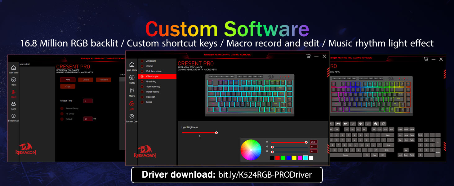 Makkalanadigan makros, harakatsiz boshqarish- Kerakli dasturiy ta'minotni tez zudlik bilan dasturiy ta'minotsiz dasturiy ta'minot (G1-G4) dasturi. O'yinlar uchun kompleks birikmalar, unumdorlik yoki ommaviy axborot vositalarining buyruqlari. Ish oqimingizni bir necha soniya ichida o'zgartiring. Siz funktsiyalarni sozlash, makros yaratish, RGB chiroqlarini sozlash va yorliqlarni o'rnatish uchun dasturiy ta'minotdan foydalanishingiz mumkin.
