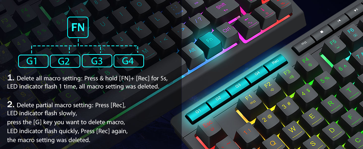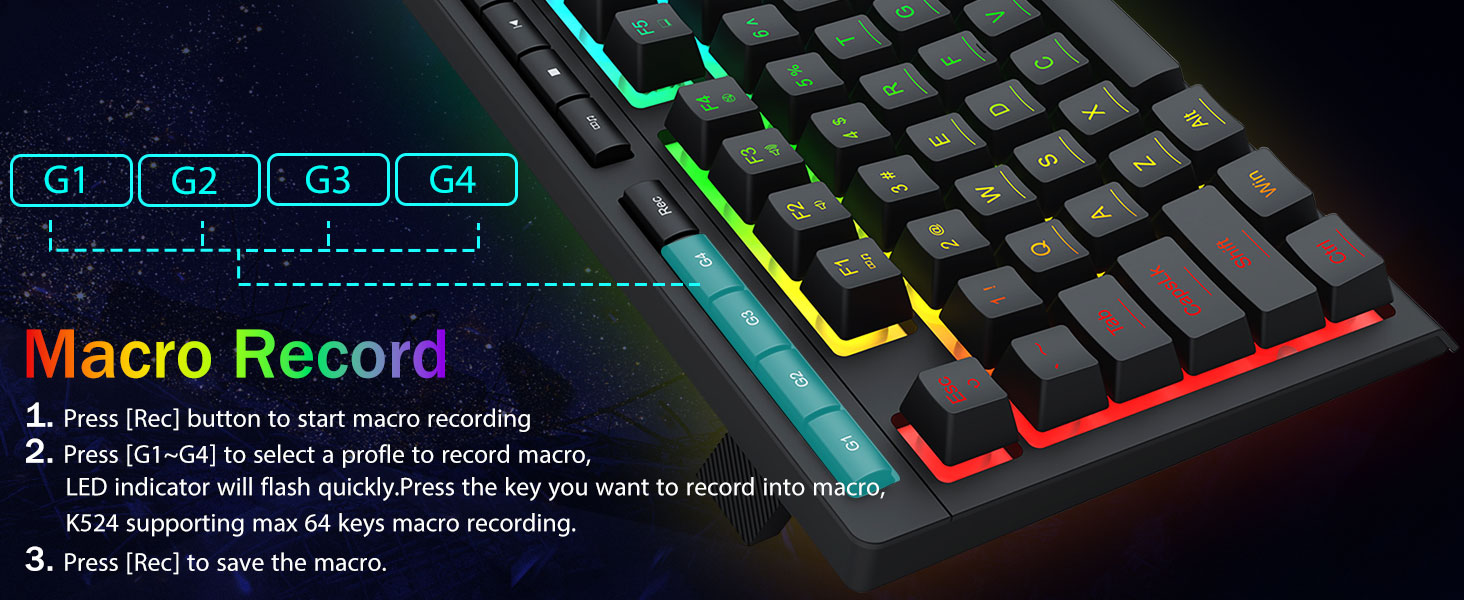 4 ta sahifaning makro kalitlari -4 ta dastur makro kalitlari (G1 ~ G4) dasturlashtiriladi va qo'shimcha dasturlarsiz chivinda ishlashadi. Kalitlar tahrirlash oson va turli xil makroslarni bajarishi mumkin.