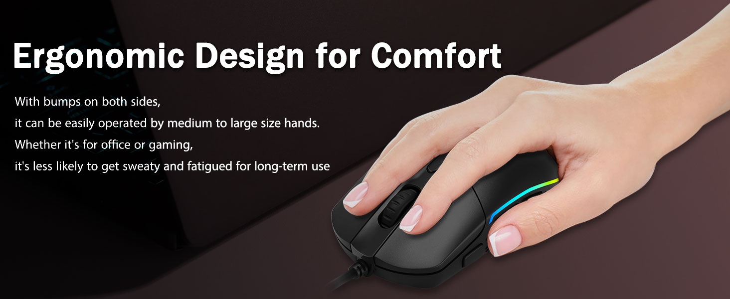 Qulay tutmoq- Ikkala tomonda ergonomik bo'laklar har qanday qo'lda qimor sichqonlar hosil qiladi. Bu uzoq soatlar davomida juda ko'p qizg'in o'yin paytida charchoqsiz o'yinchilarga uzoq davom etadigan qulaylikni ta'minlaydi. O'yin sichqonchasini ko'tarishda yoki tezkor ravishda siljish paytida u sirg'almaydi.