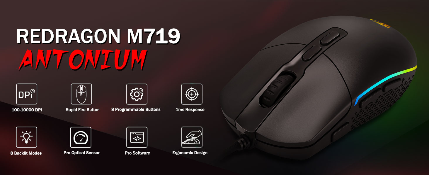 Chuangqan, Xitoyda professional ishlab chiqaruvchi sifatida yuqori samarali Reggon Black M719 simli Antonite Sichqonchani yuqori samarali bo'lgan. Ushbu sichqonchaning og'ir o'yinlari, 10,000 gacha bo'lgan yuqori saylov darajasi, 7 ta dasturlashtirilgan tugmachalar va Dinamik RGBni aks ettiruvchi og'ir geymerlar uchun muhandislar. Uning ergonomik tutilishi kengayish paytida kengayish paytida qulaylikni ta'minlaydi, bu aniq o'yin qurolini yaratadi. Xaridorlar ushbu ishonchli o'yinlarni perifritikal ravishda to'g'ridan-to'g'ri Chuango'nning raqobatbardosh narxlarda, izchil va a'lo qiymatdan foyda olishlari mumkin .