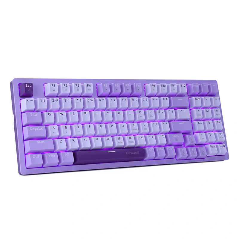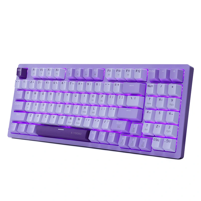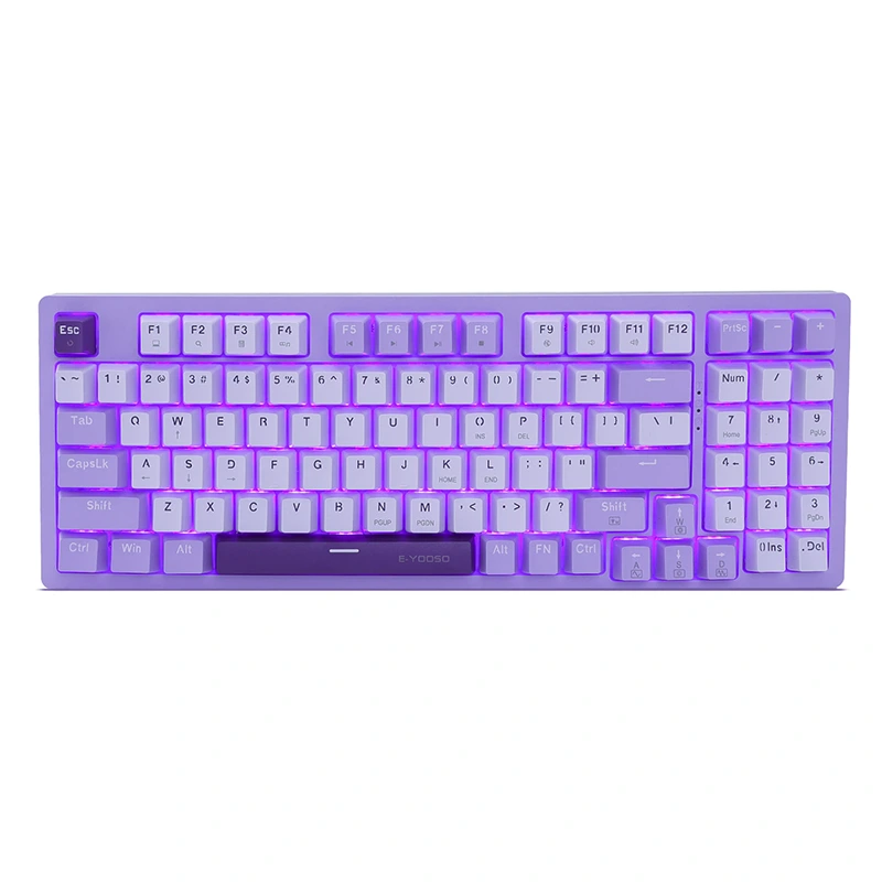 HUO JI mexanik oʻyin klaviaturasi USB simli 94 tugmachali ixcham, raqamlar paneli bilan. U chiroyli binafsha rangli yoritgichli yoritgichli va olinadigan C tipi kabelli koʻk kalitga ega, ulang va oʻynang Juda qulay