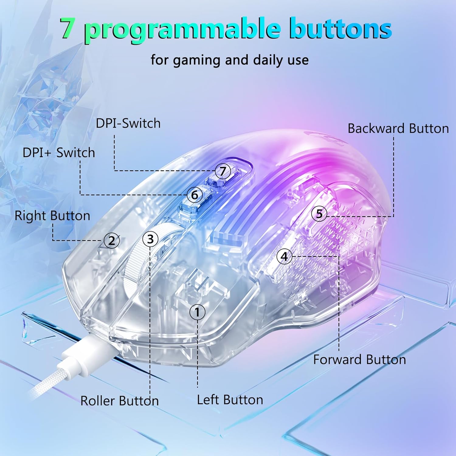 CHUANGQUAN White M695CT 24 000 DPI 8 RGB LED yoritgichli rejimli simli oʻyin sichqonchasi tezlik, aniqlik va uslubni talab qiladigan oʻyinchilar uchun yaratilgan oʻta aniq kuzatuv, silliq boshqaruv va dinamik yoritishni taʼminlaydi.