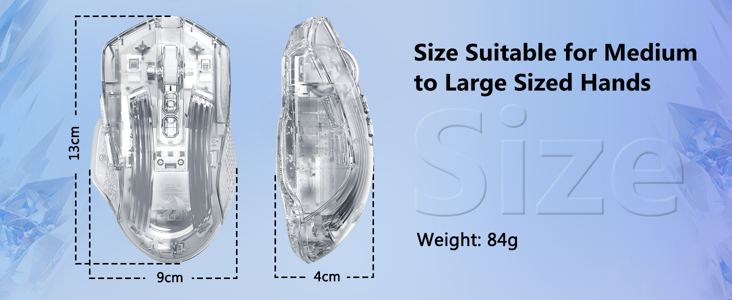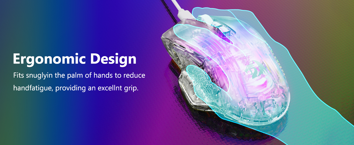 Sichqoncha qo'lga tabiiy ravishda sig'adigan shaklga ega bo'lib, ortiqcha zo'riqishsiz uzoq vaqt foydalanishni qo'llab-quvvatlaydi. Uning tuzilishi qulay ushlash uslublarini, jumladan, palma, tirnoq va barmoq uchi tutqichlarini yaratishga imkon beradi.