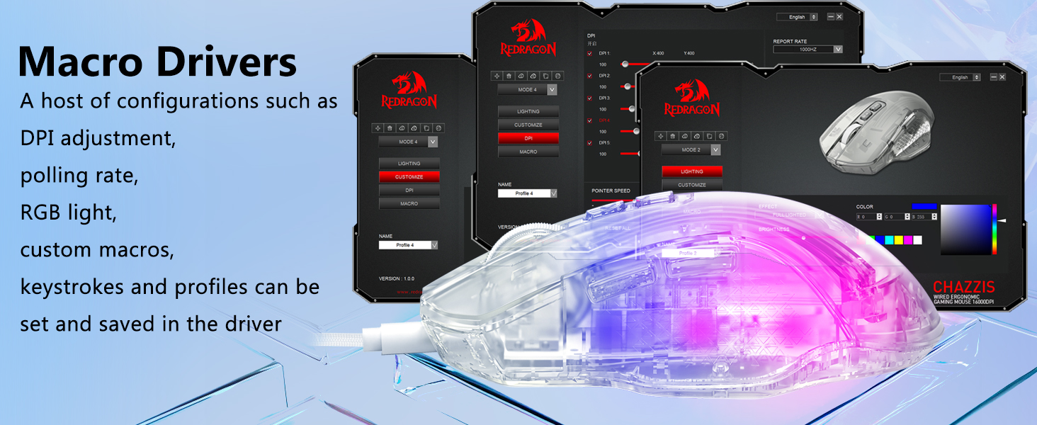 Sozlanishi mumkin bo'lgan DPI darajalari foydalanuvchining xohishiga ko'ra sozlash imkonini beradi, bu uni turli o'yin janrlari va ish oqimlari uchun mos qiladi.