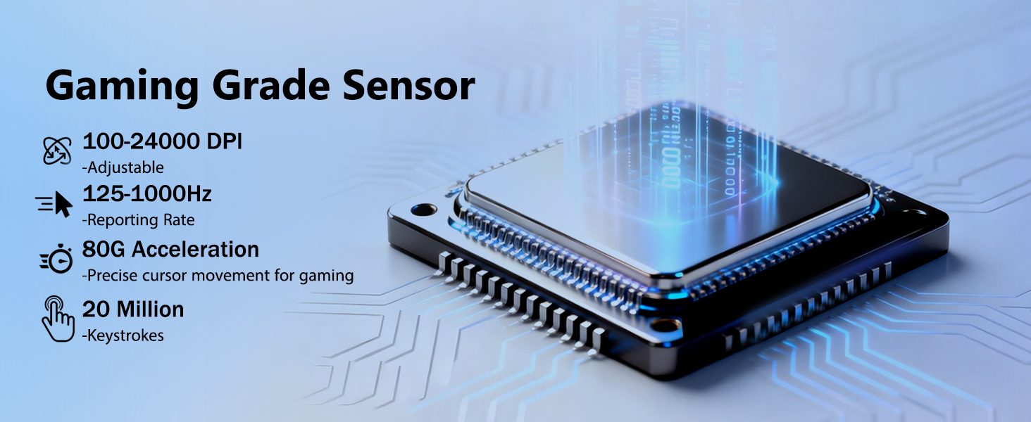 Sichqoncha 24 000 DPI gacha ko'tara oladigan ilg'or optik sensor bilan jihozlangan. Bu foydalanuvchilarga sezgirlikni turli stsenariylarga ko'ra sozlash imkonini beradi, o'yinlarda aniq nishonga olishdan tortib, katta ekranlar bo'ylab kursorning tez harakatlanishigacha.