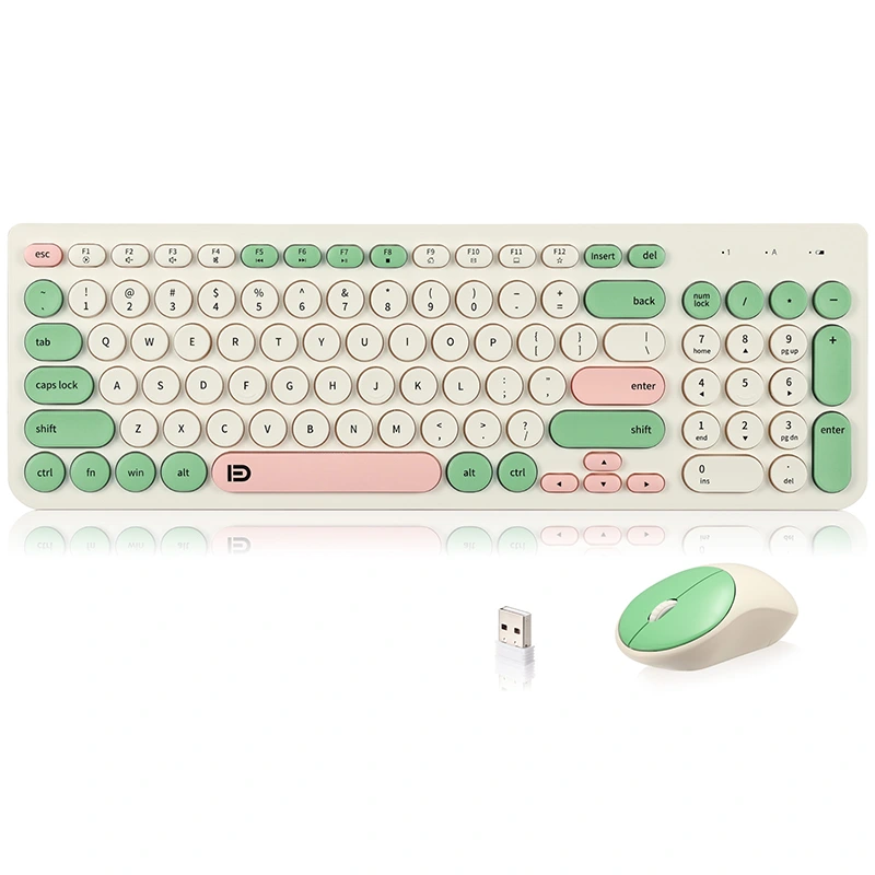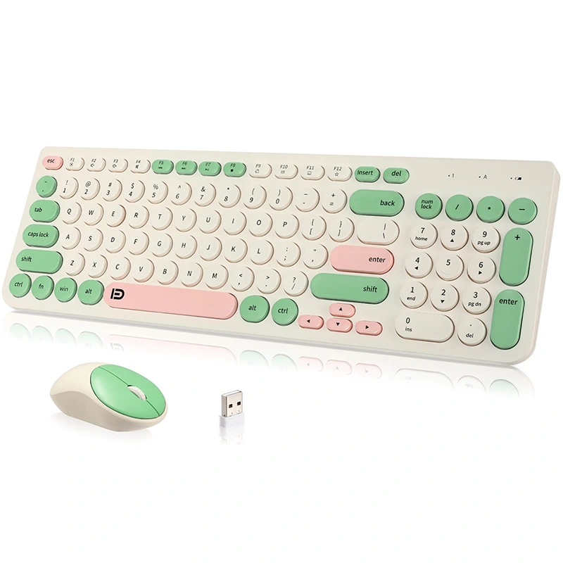 Simsiz klaviatura va sichqoncha 2,4 gigagertsli kombinatsiya, dumaloq tugmachali retro yozuv mashinkasi, ish stoli, noutbuk va kompyuter uchun 104 tugmali to‘liq o‘lchamli USB jim sichqoncha
